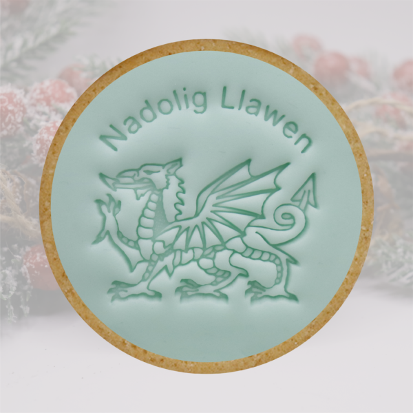 Welsh Dragon nadolig llawen stamp, Cookie Embosser, Cookie stamp, Biscuit Cutter, Icing Stamp, fondant stamp, cake decorating, clay stencil, Embosser